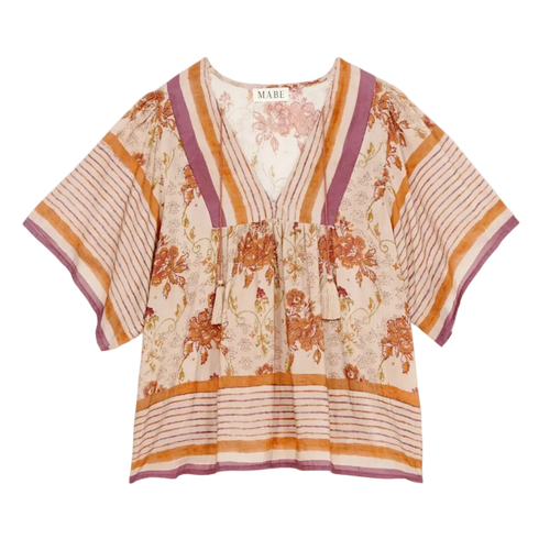 Made from lightweight cotton the Della top is designed in a pretty summer floral blockprint. The gentle gathers give it a breezy and easy fit.